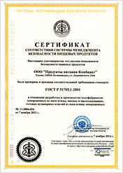 Заводы прошли проверку EFSA (Европейское агентство по безопасности продуктов питания), продукция допущена к экспорту в страны ЕС.